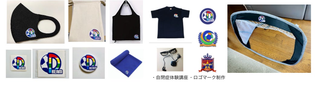 エコバッグやステッカー、マスク、巾着袋、Tシャツ、ポップアップゴール、