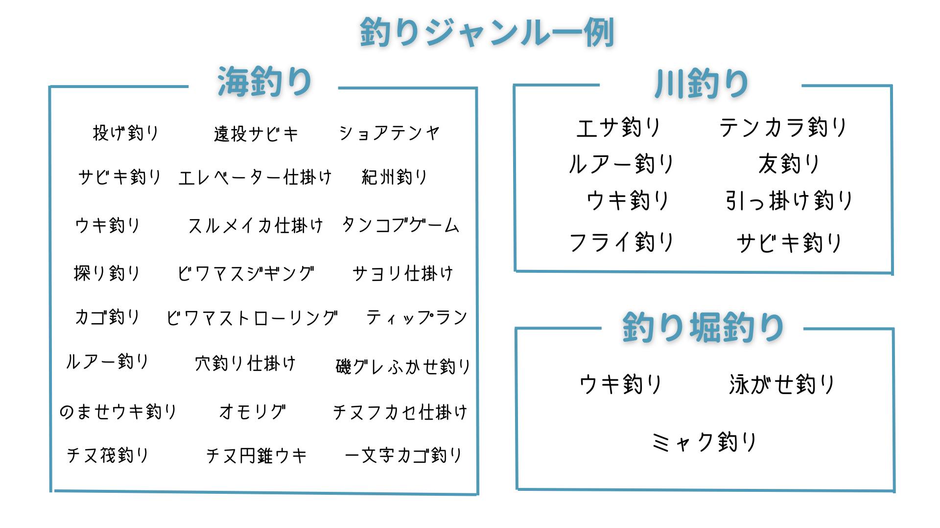 釣りの初心者向けのコンテンツや教材もたくさんありますが、本当の初心者からすると用語が分からなかったり、そもそもどんなジャンルがあるのかすら知らないので、何を見たらいいのか分かりづらいのが現状です。