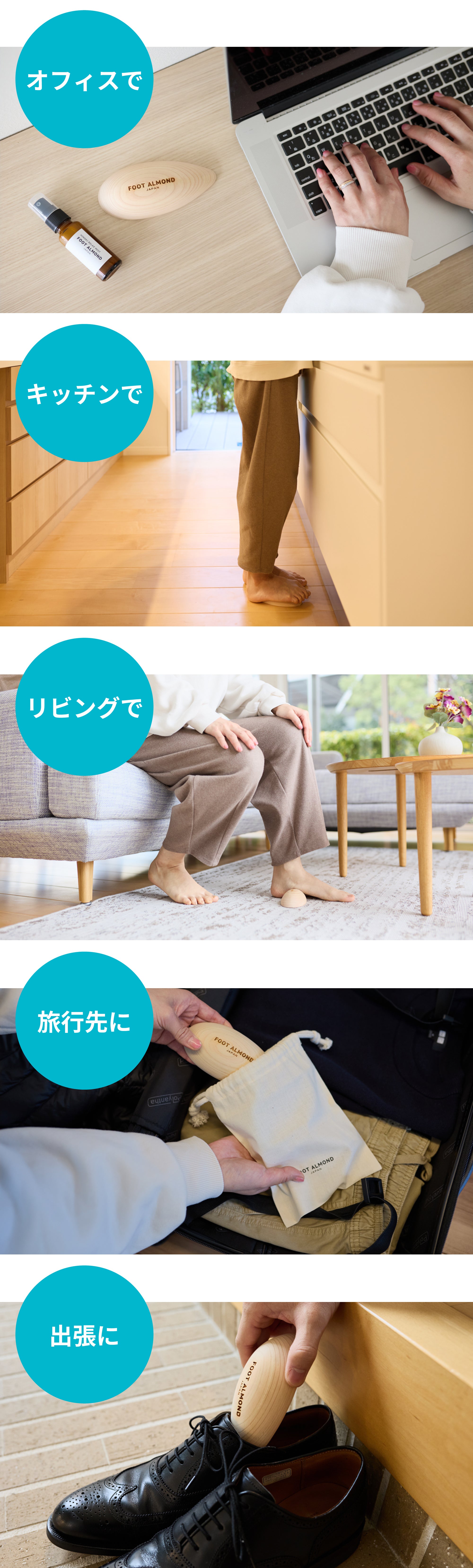 頂点付近と全体の丸みが、通常とらえにくい足底筋膜を的確にとらえ、様々なトラブルを生みやすい足底筋膜のストレッチを可能にしました。