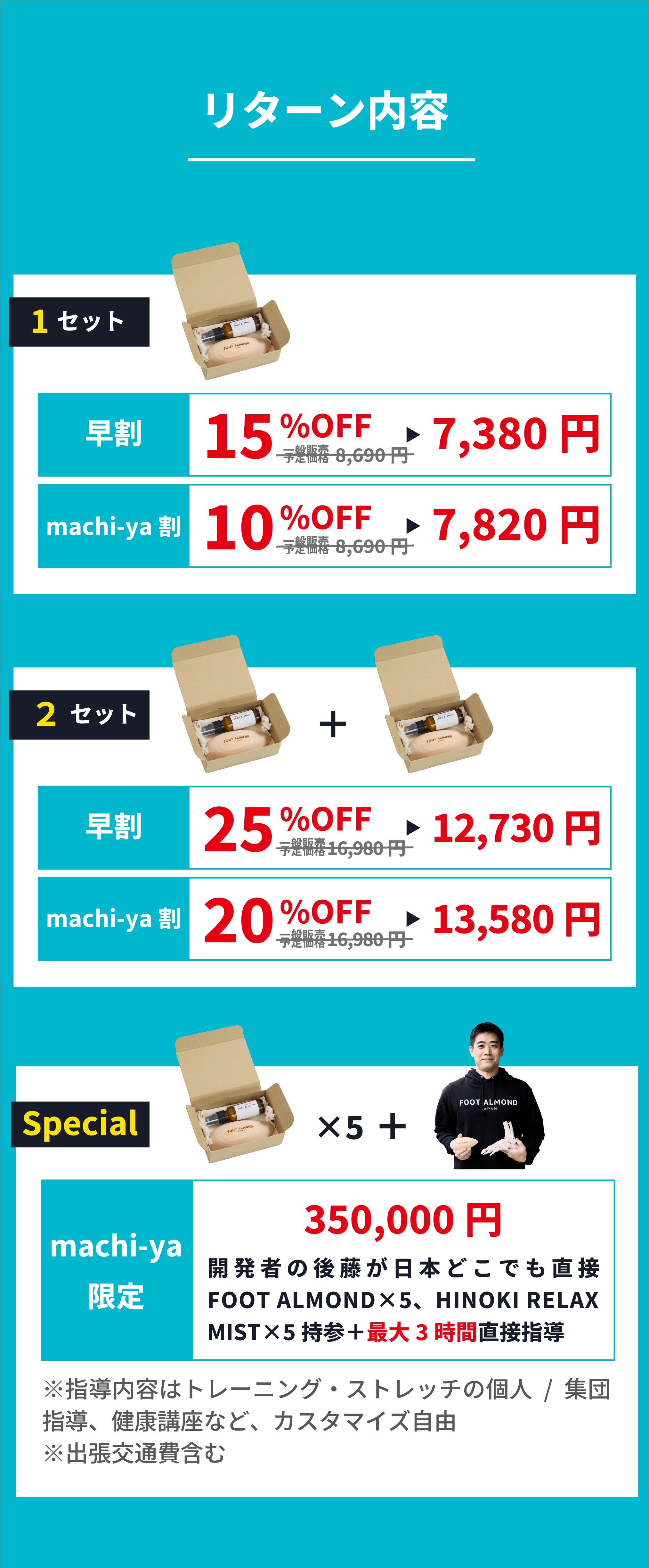 ※リターン価格とは別にCAMPFIRE(machi-ya)のシステム利用料として、支援金額1万円未満の場合は250円(税込)/ 1万円以上の場合は支援額の2.5%(税込)が支援者様の負担となります。