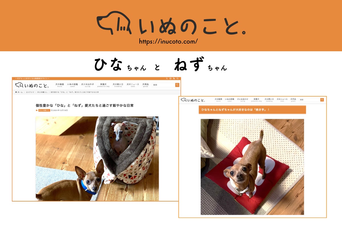 インタビュー記事の掲載にご協力いただいた動物系WEBメディア「ねこのこと。」「いぬのこと。」は、それぞれ猫といぬに関するコンテンツを毎⽇配信している動物専⾨Webメディアです。