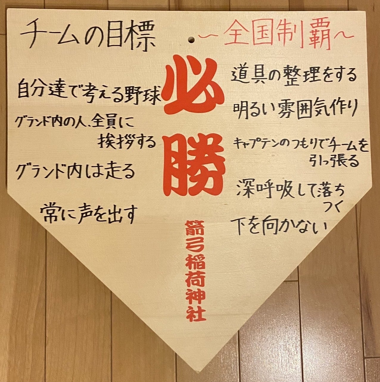 全国制覇を果たすために、5年生の時に選手達がみずから考えた9つの約束です。