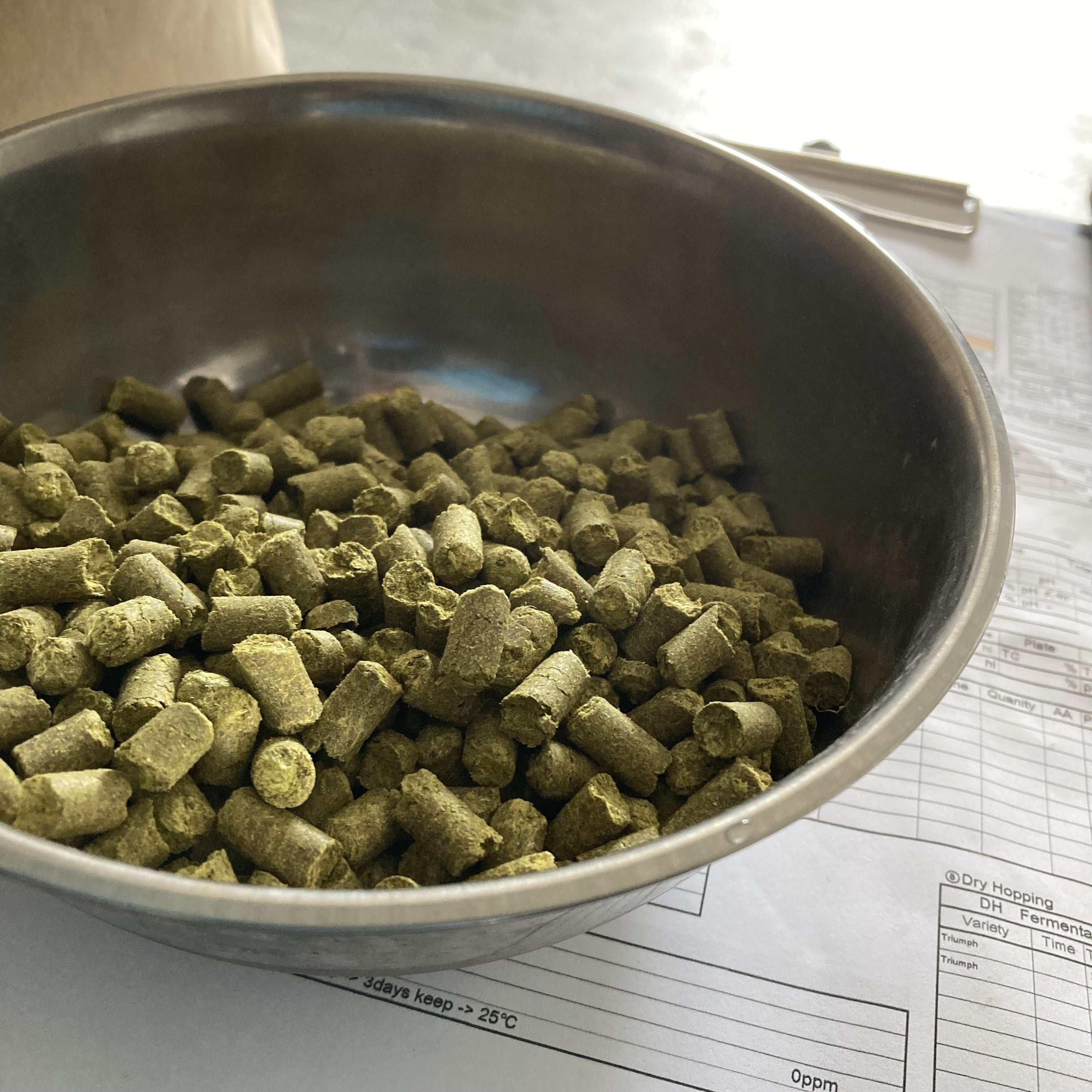 よく使用されるペレット状のホップ