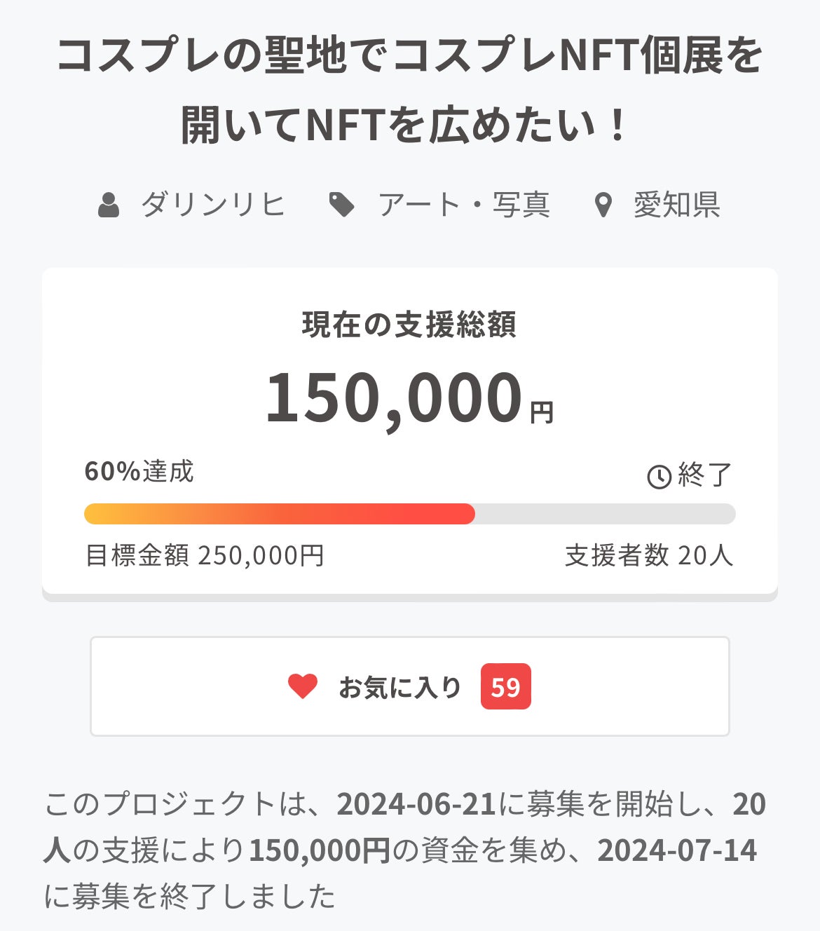 なんと60%を達成し150000円のご支援をいただくことができました!