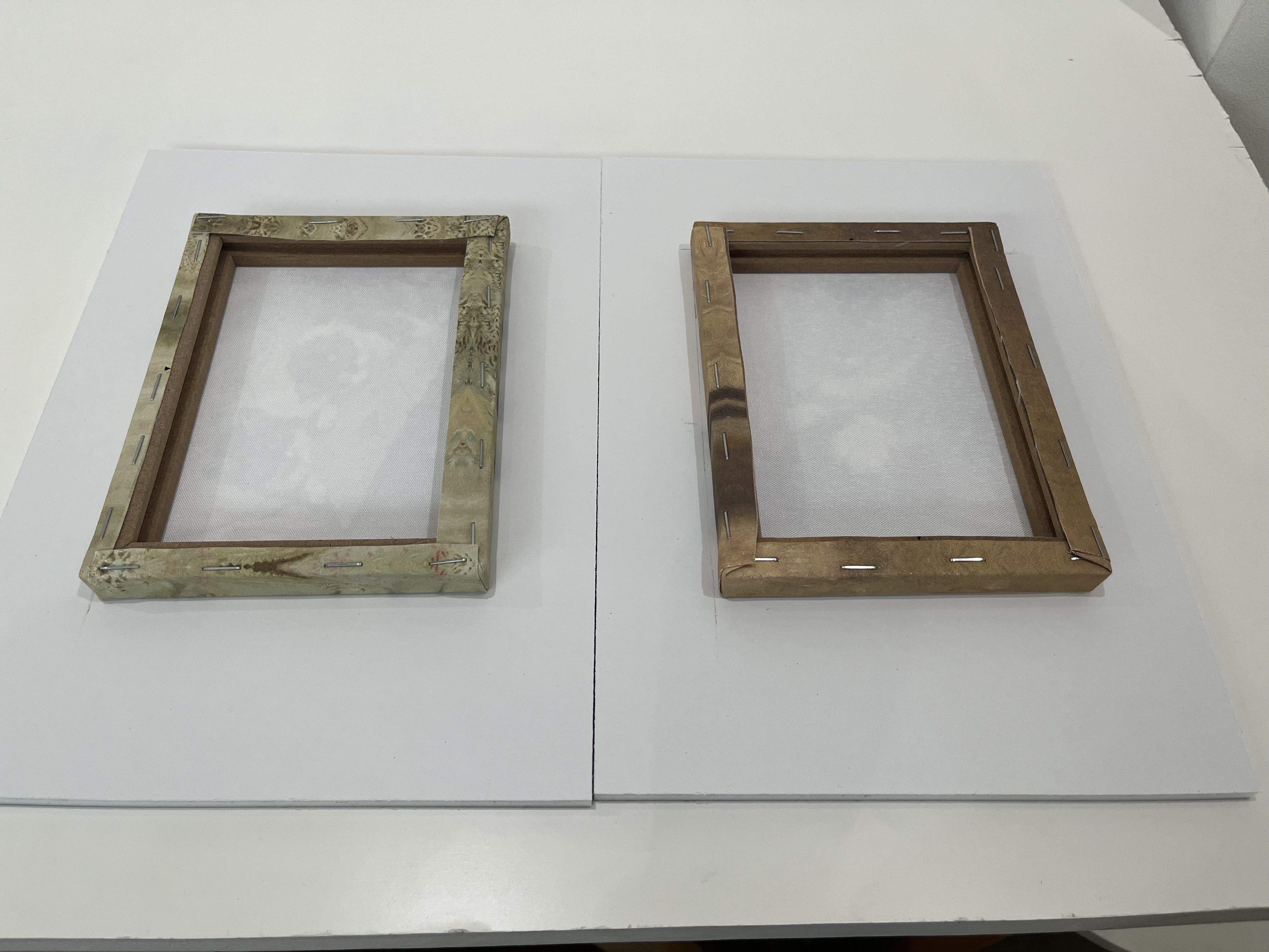 加工を業者さんにお願いすると高くつくので100均のキャンバスパネルを両面テープで貼り付けました。