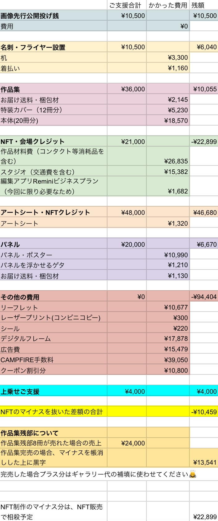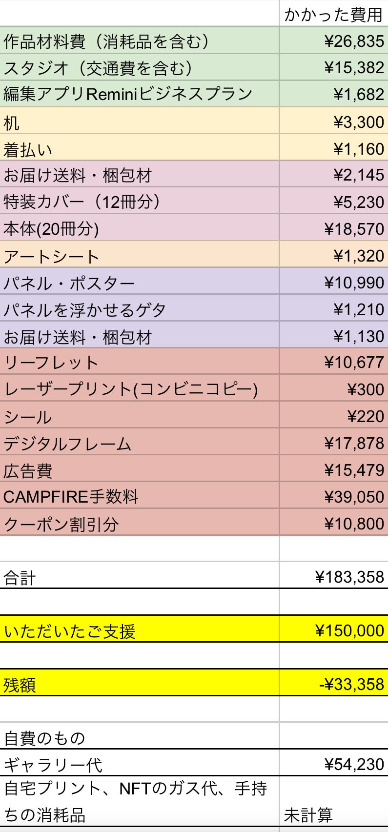 クラウドファンディングでご後援くださった皆様のおかげで、約1万円のマイナスで済みました。ありがとうございます!