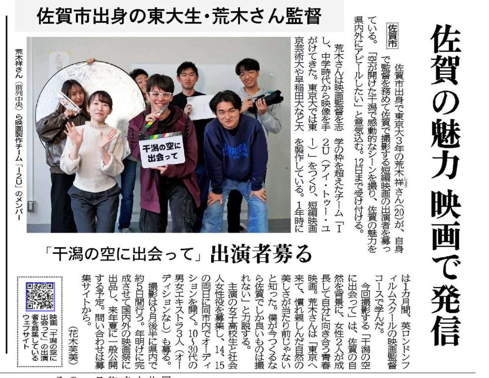 8月9日佐賀新聞に取り上げられました!!記事はこちらから