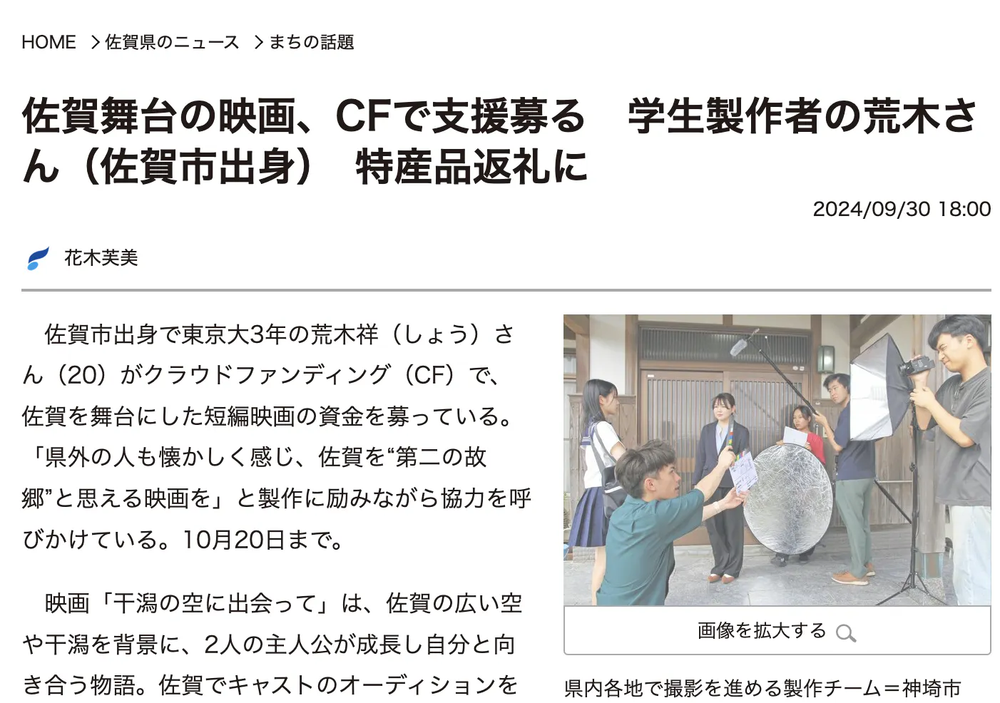 9月30日の佐賀新聞でクラウドファンディングの紹介をしていただきました。