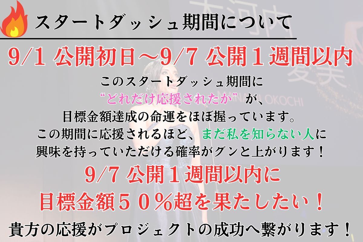 "この最初の1週間のスタートダッシュ期間にどれだけ応援されるか" が、