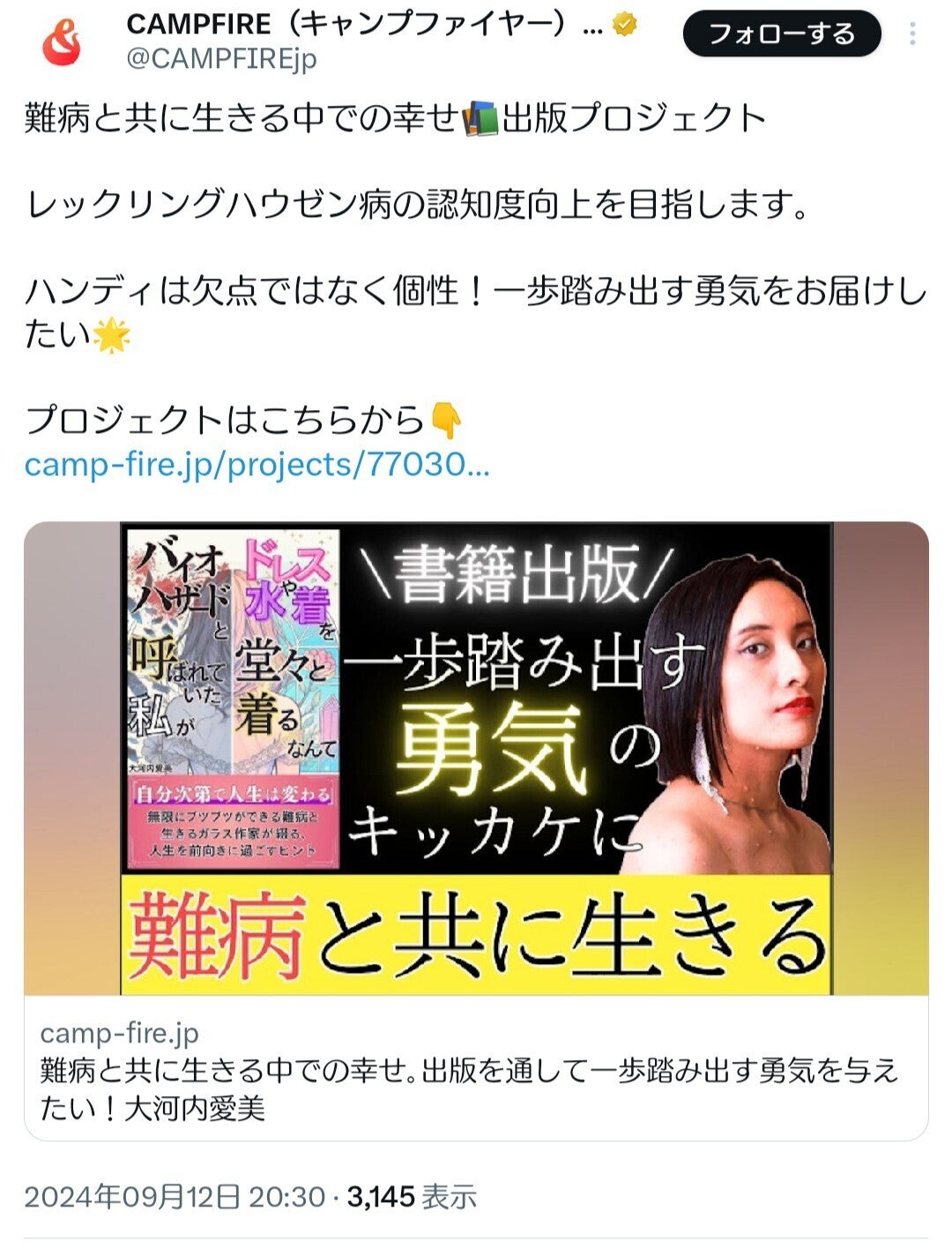 https://x.com/CAMPFIREjp/status/1834192735642743137?t=fIUUnkA7MdM3PPbSEA18lw&s=19