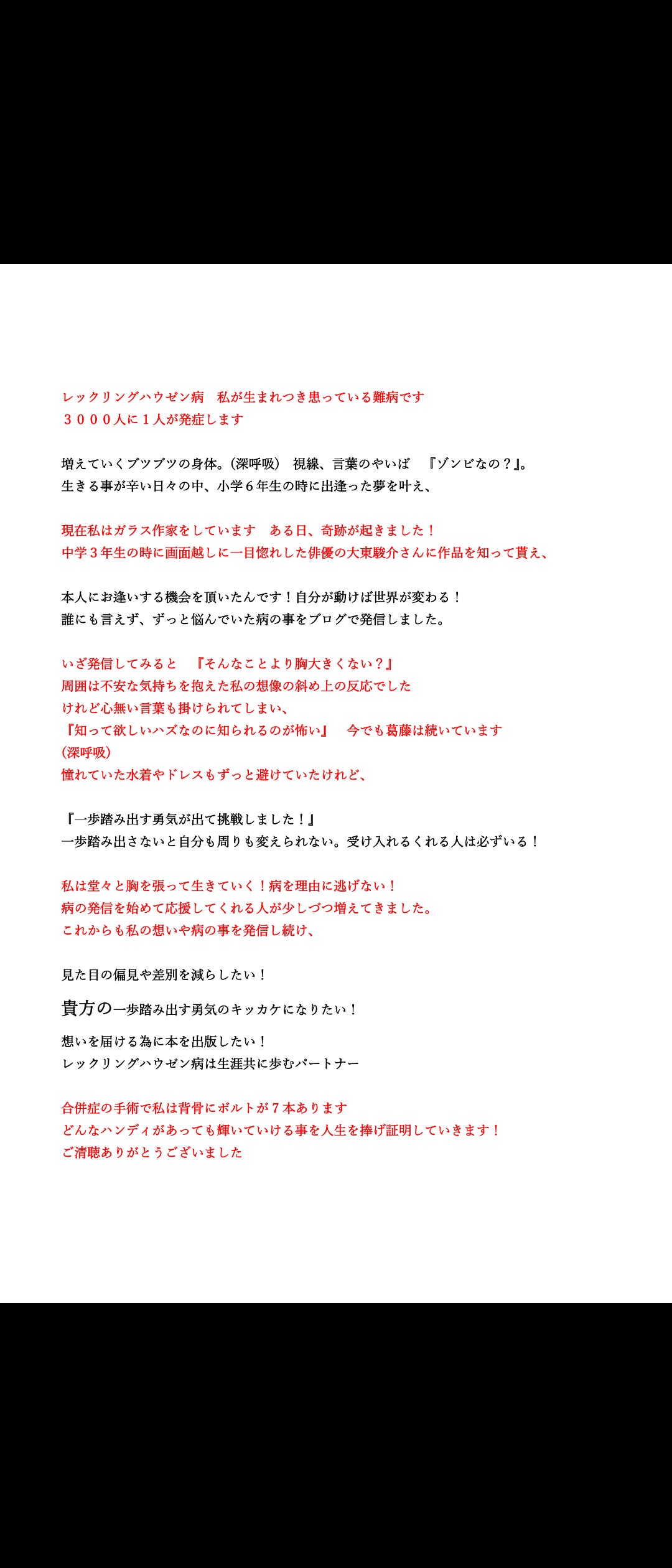 私がステージに立った日、想いを語った日。