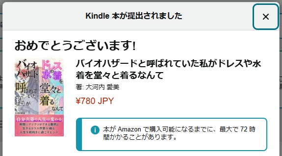 Amazonさんの仕事が早くて出版が早まりました!