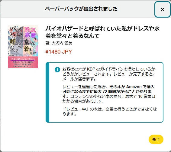 実は、電子書籍の方が想像以上に審査が早く終わり、