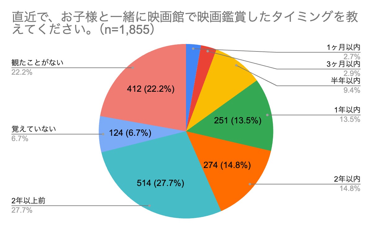 【3】保護者の5人に1人が「親子一緒に映画館で観たことがない」と回答。「1年以上観ていない」「覚えていない」も含めると割合は71.3%に。