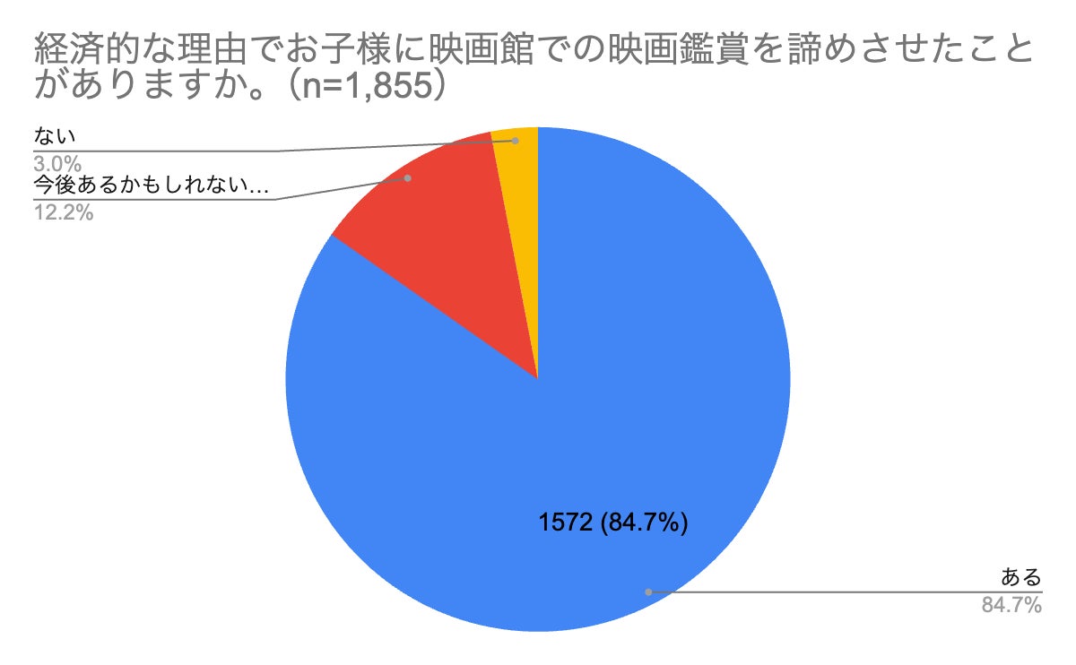 【1】保護者の84.7%が「経済的な理由で映画館での鑑賞を諦めさせた経験がある」と回答。「今後あるかもしれないと不安に感じている」も合わせると96.9%に。