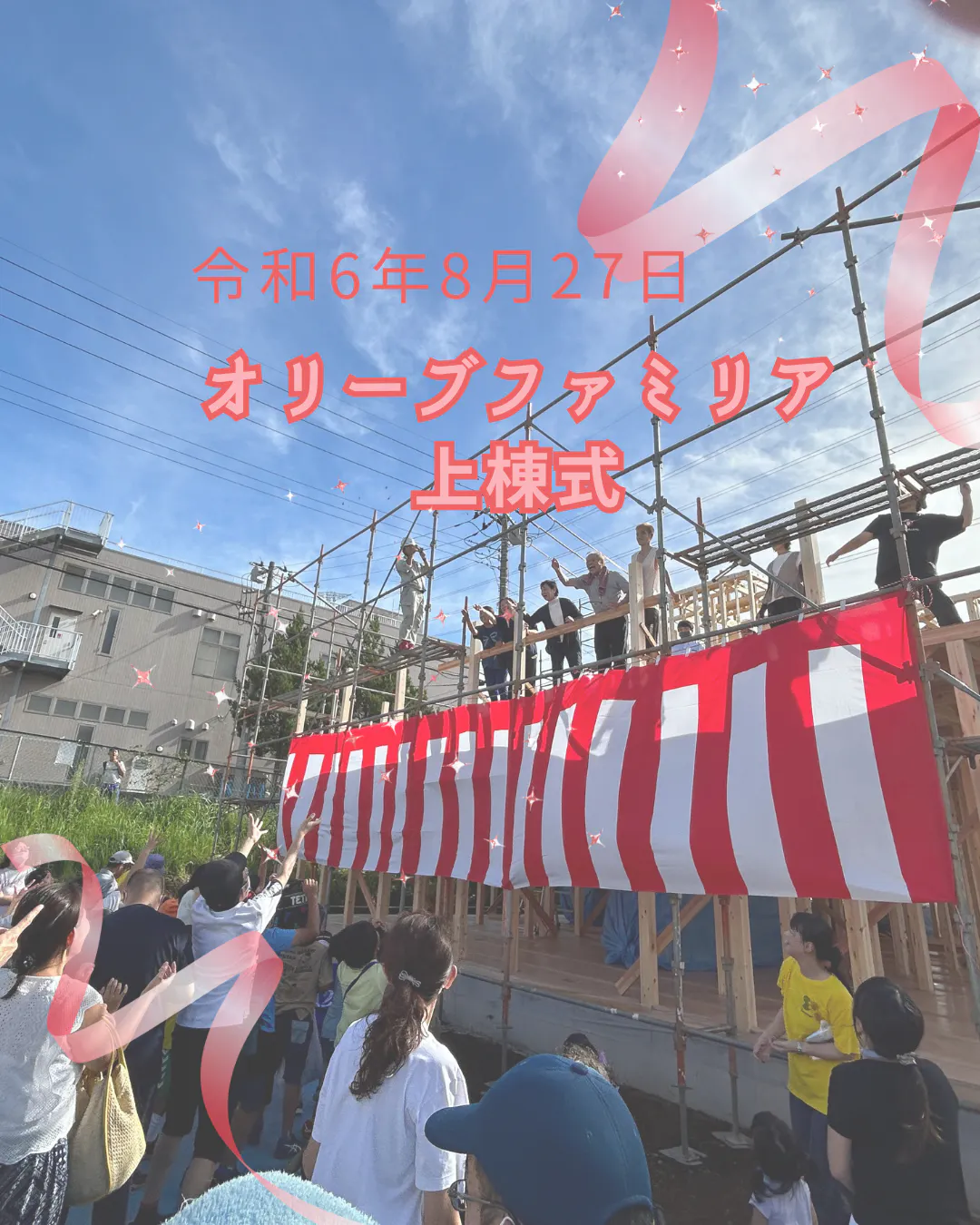 令和6年8月27日にオリーブファミリア上棟式(建前)を行いました。