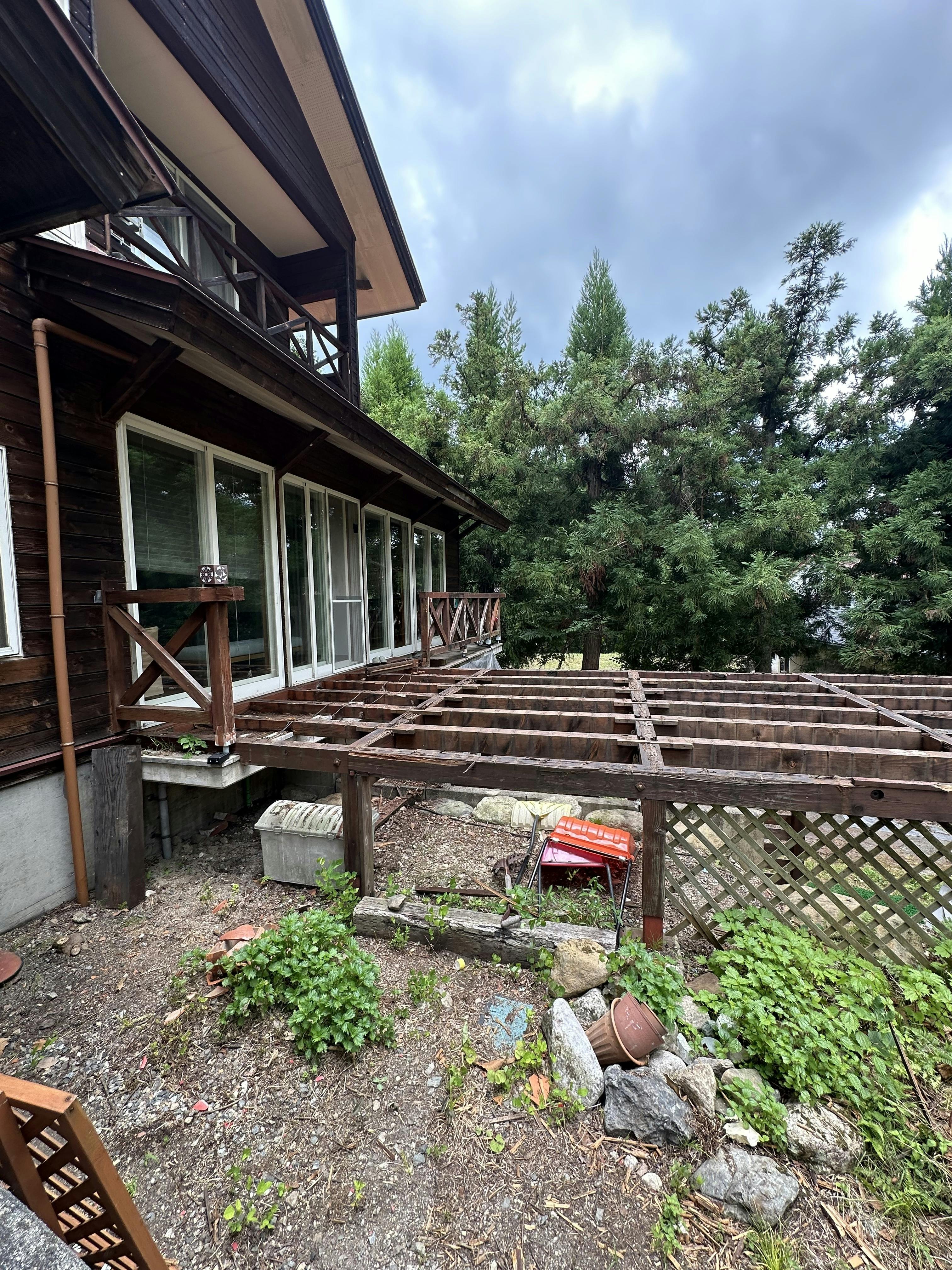 先日、クラファン開始後、早速テラスの床板を取り外しましたが、写真の通り土台の状態が悪く、土台から作り直しが必要となりました。従い、テラス修繕は思っていた以上にコストがかかりそうです。見積もりが甘く、反省しております!