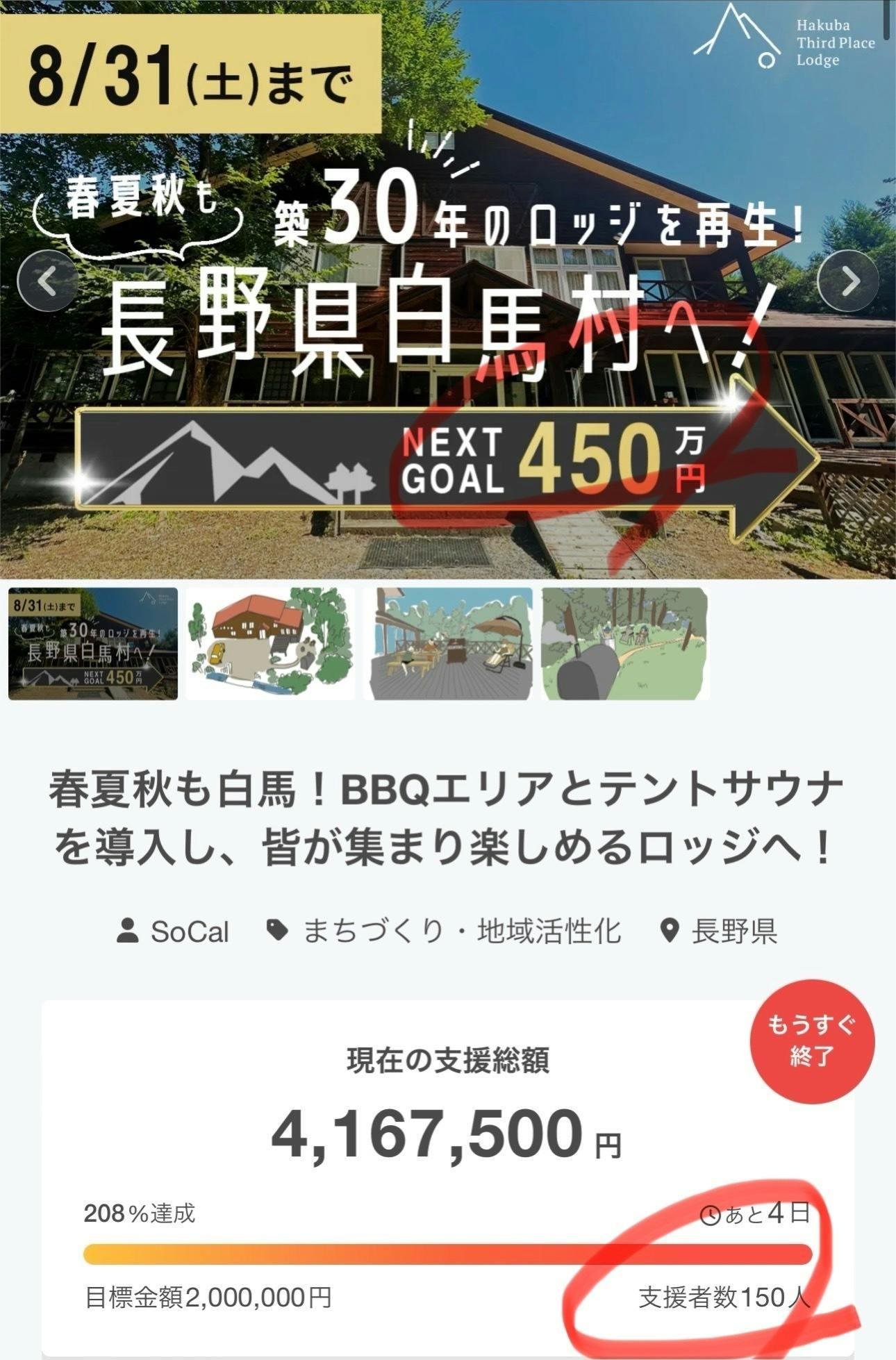 詳細は本文冒頭を更新したので、再度お読み頂きたいですが、400万円を超えた資金については、ロッジをより良くして宿泊客の満足度を上げる活動の一部に充てたいと思っています。