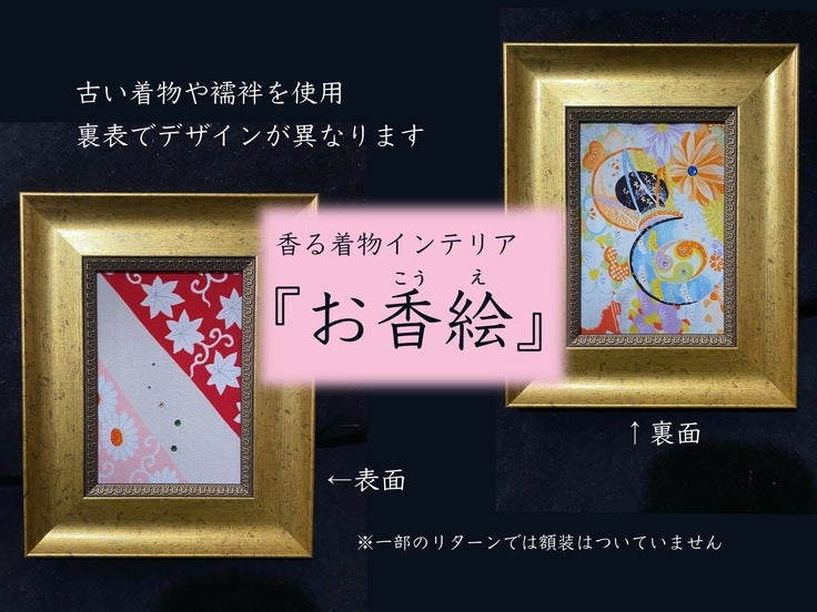 京都の「香り」と臭い吸収のインテリアコースお香絵(おこうえ)は両面着物となり、額装するとリバーシブルのインテリアとなります。