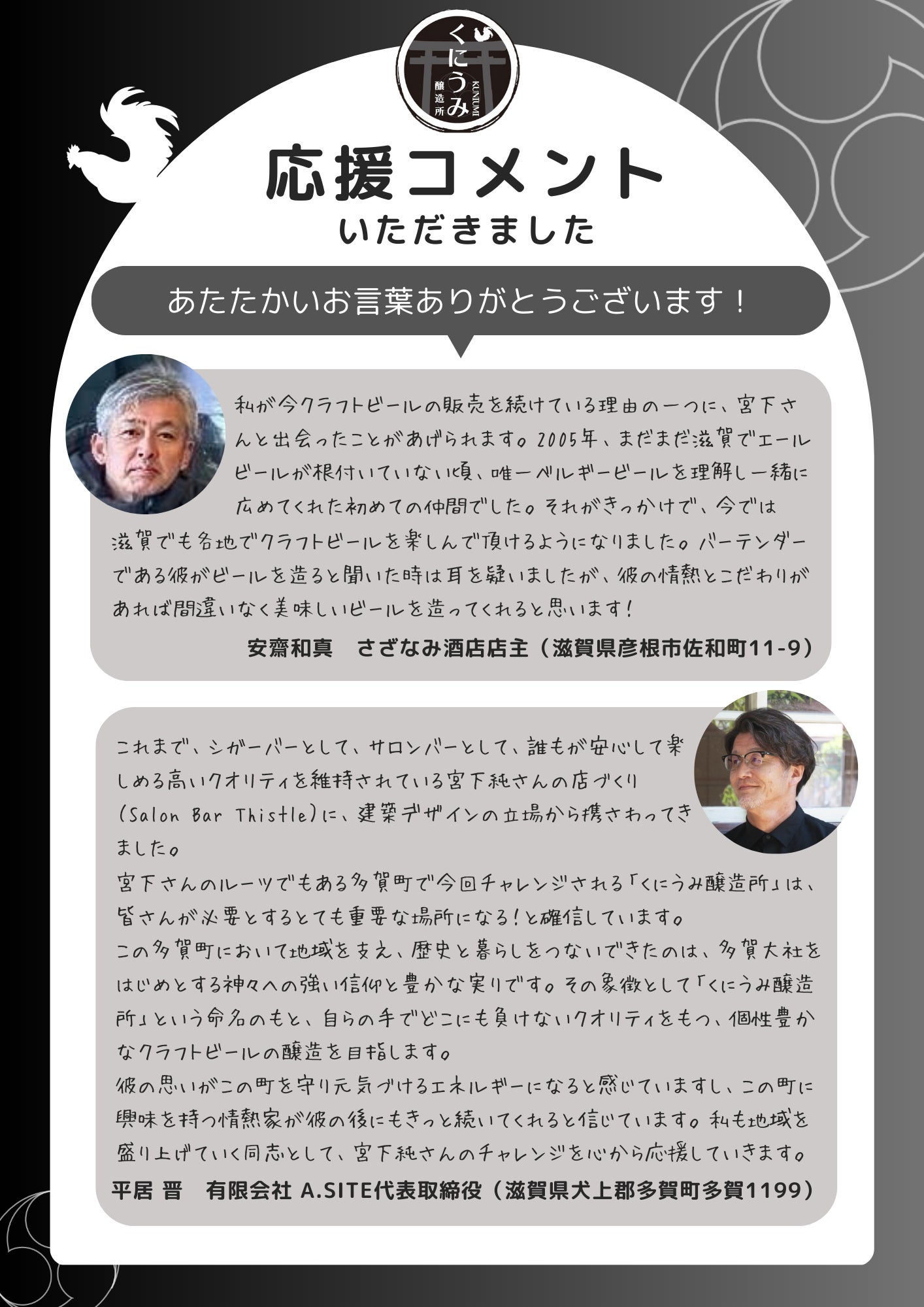 この醸造所を通して、多くの方が多賀町を知るきっかけ作りができることを願っています。