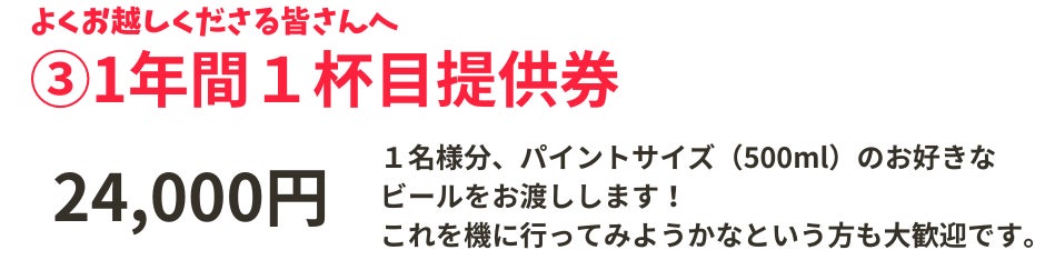 ・2万4千円:1年間1杯目提供券