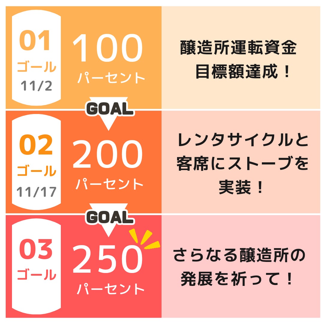 ラストの目標、さらなる醸造所の発展に向けて、3rdゴールとして250万円を掲げさせていただきます。引き続き、ご支援のほど、よろしくお願いいたします!