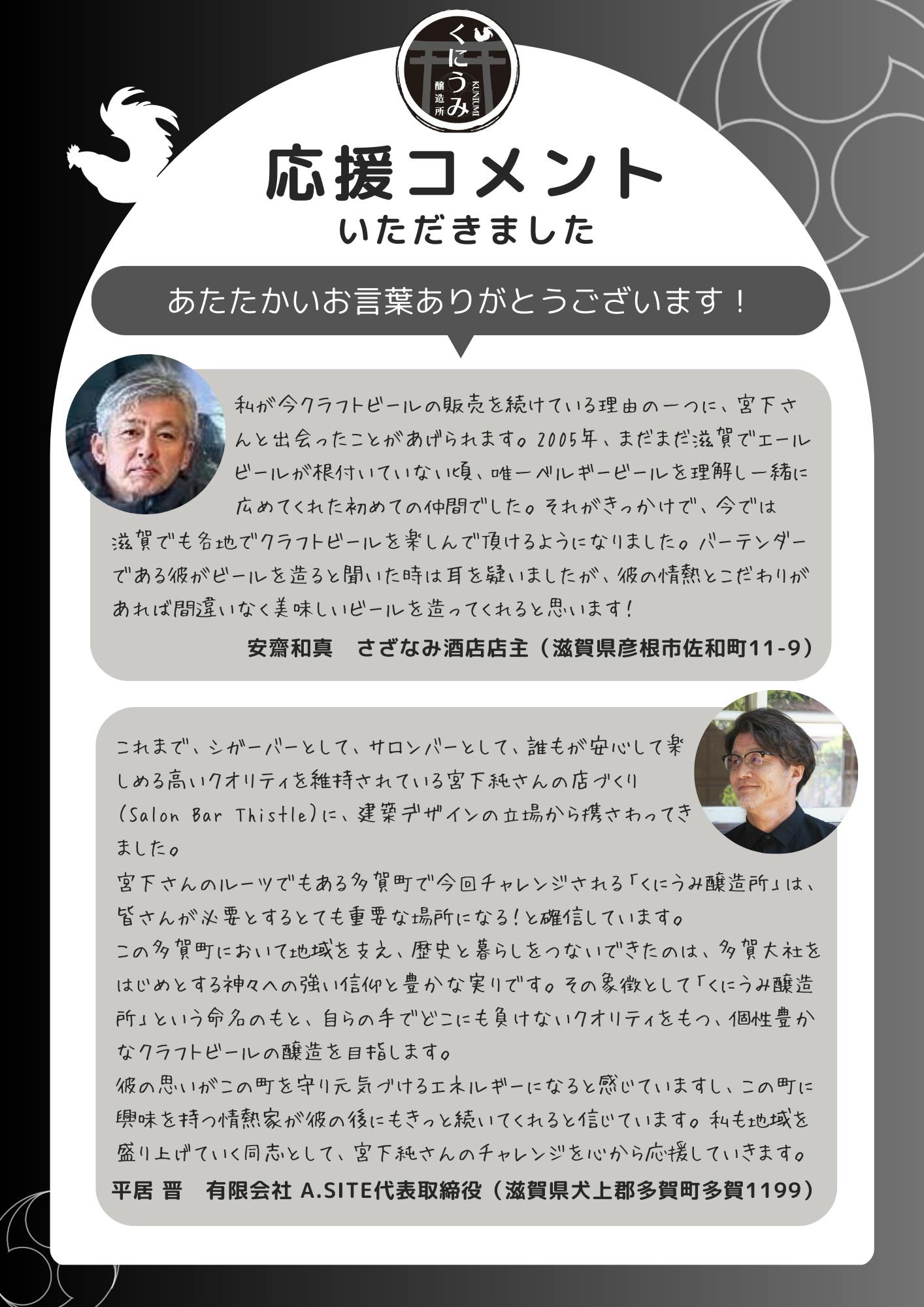 またビール以外のメニューにも多賀の特産品を取り入れていく予定です。ぜひ一度くにうみ醸造所に足を運んでいただければと思います。