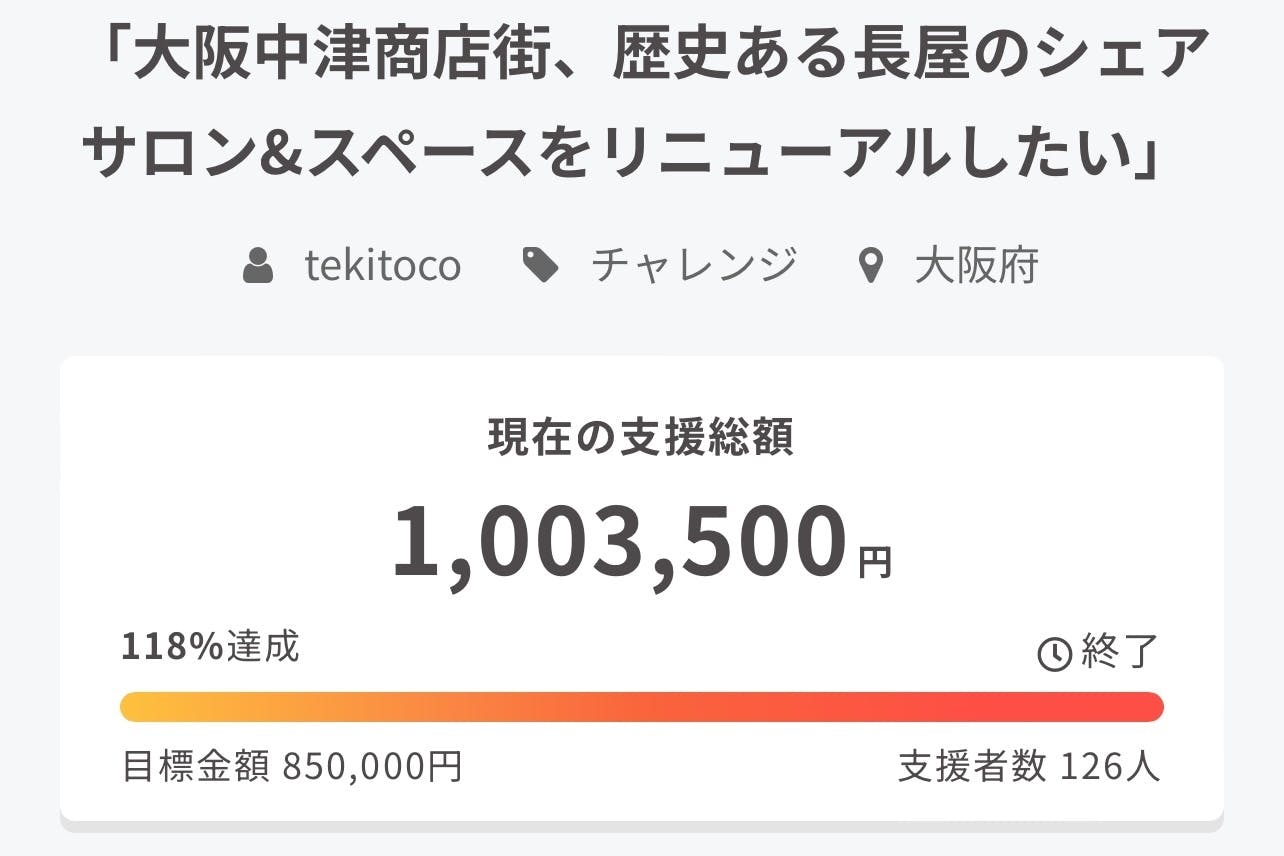 tekitocoリニューアル・クラウドファンディング。
