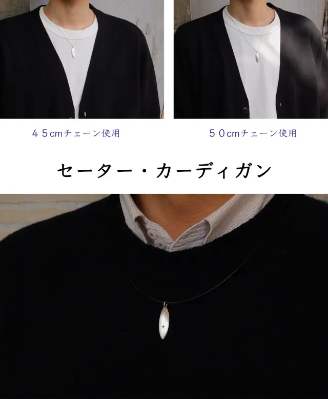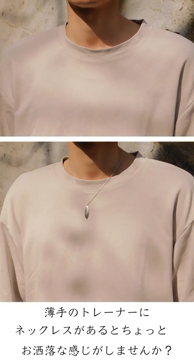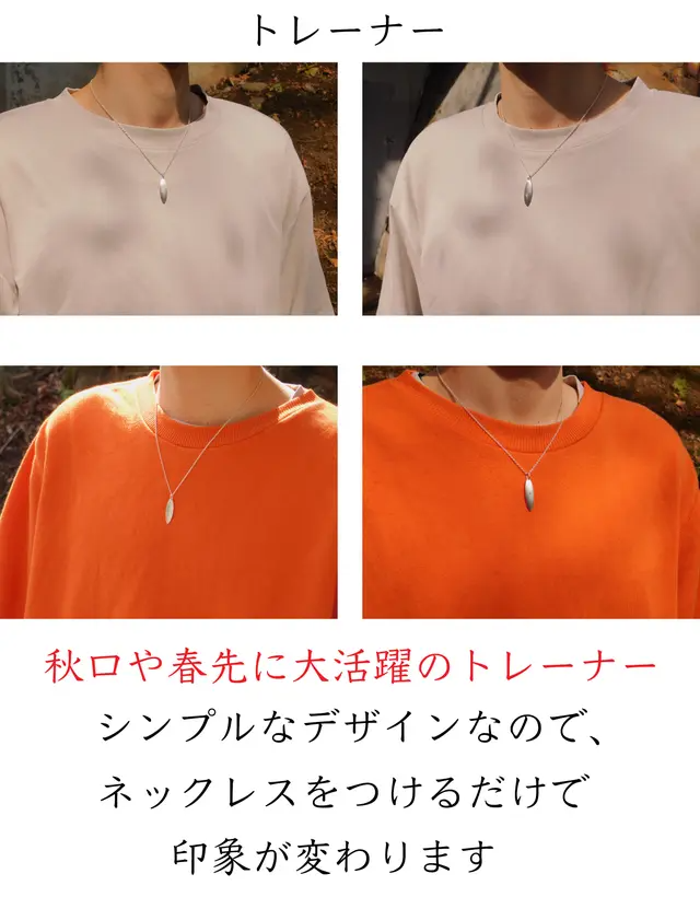 今回のネックレスもシンプルなセーターやトレーナーにさりげなく着けてみてください。
