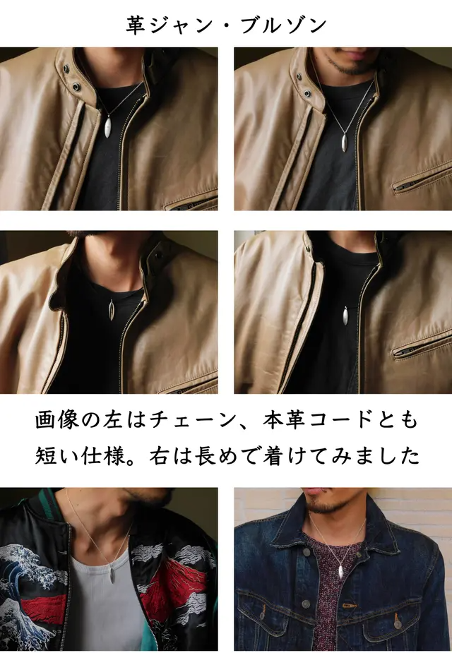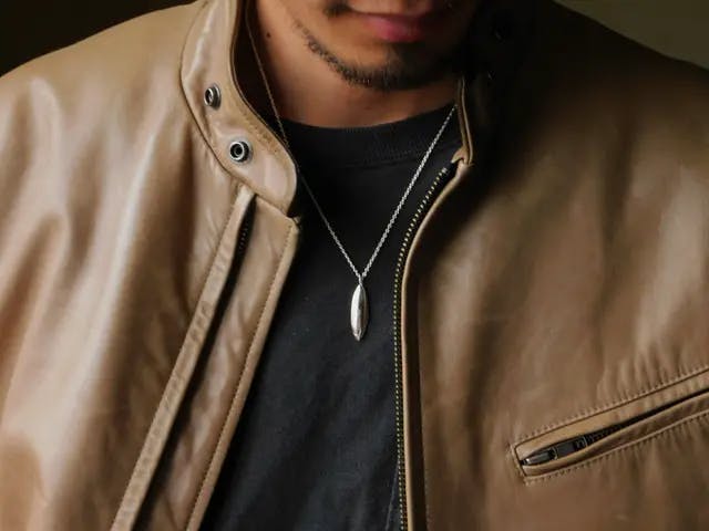 革ジャンにさりげなく輝くネックレス