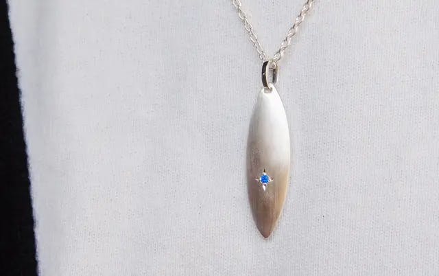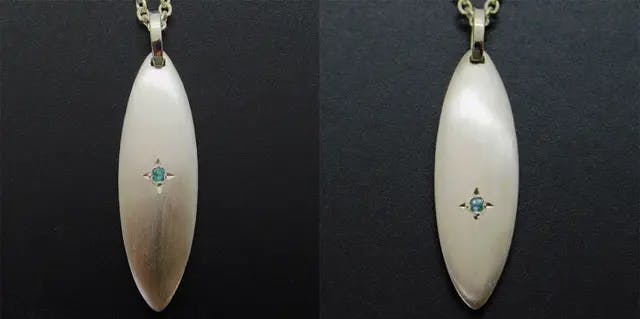 男性が着けていて、男性からは「かっこいい」。女性の方がご覧になったら「綺麗!」と思っていただけるようなデザインのネックレスを目指しました