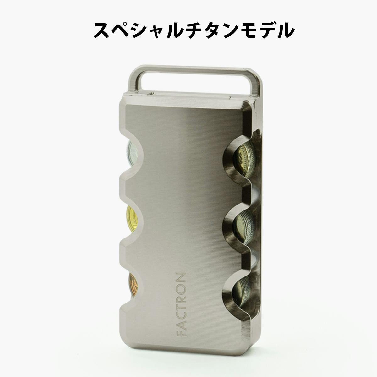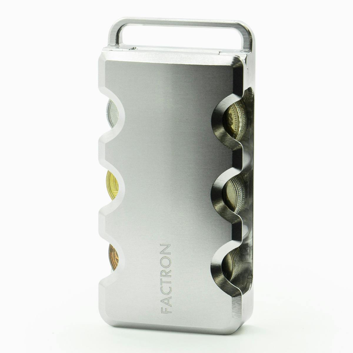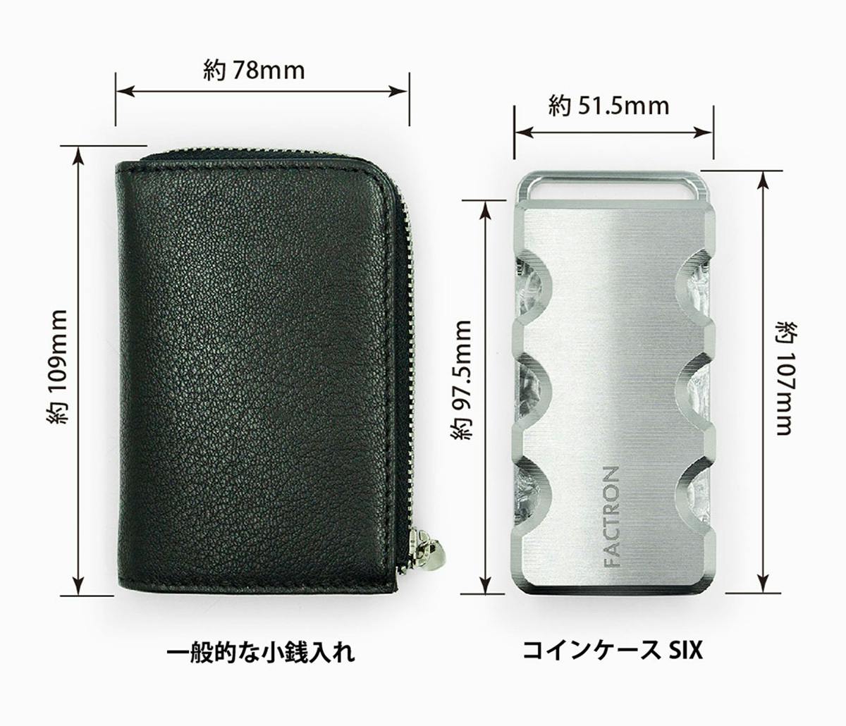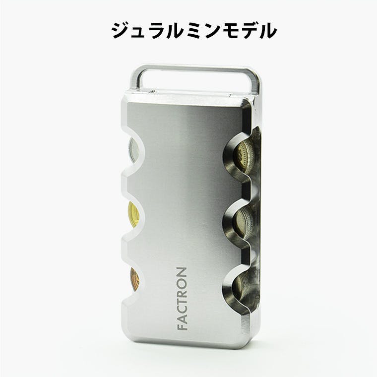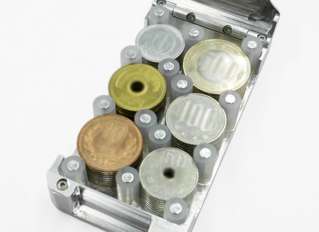 6種類の硬貨が入る『コインケースSIX』は、メタルウォレットの開発から派生したメタル削り出しコインケース。