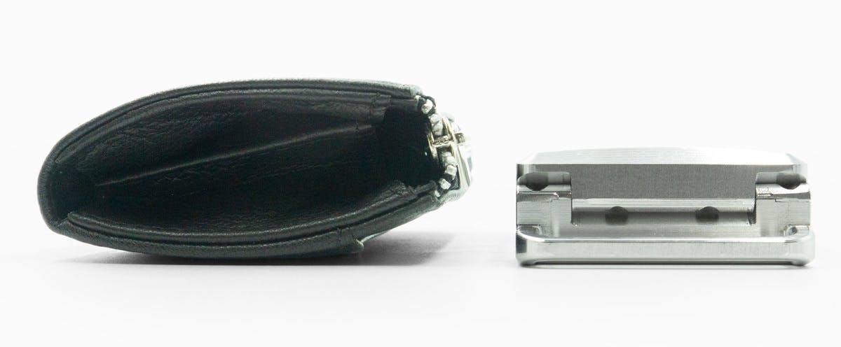 同じ量のコインを、一般的なレザー製小銭入れに入れると、厚みはこれだけの差があります。