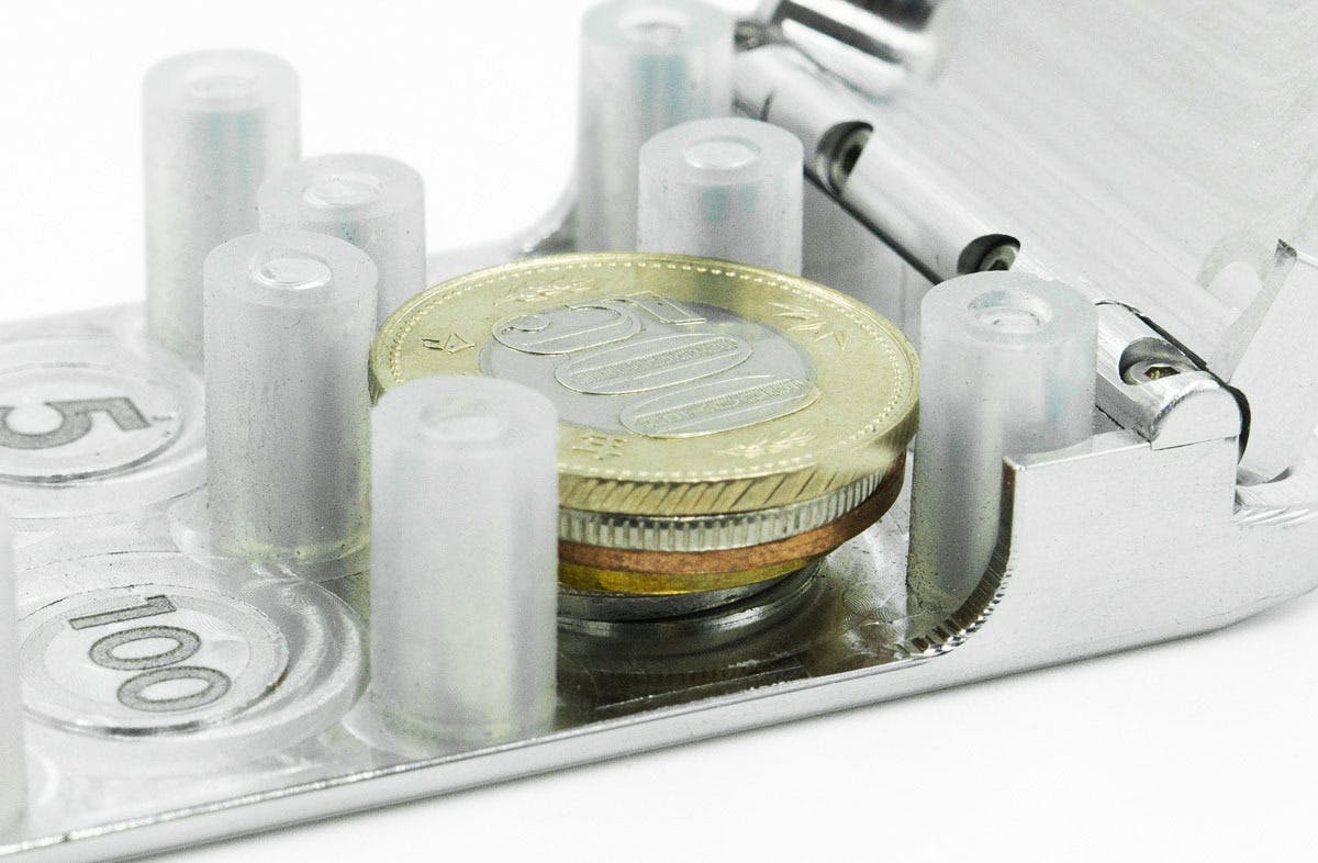 6種類の硬貨が入る『コインケースSIX』軽量・コンパクトだから持ち運びに便利。