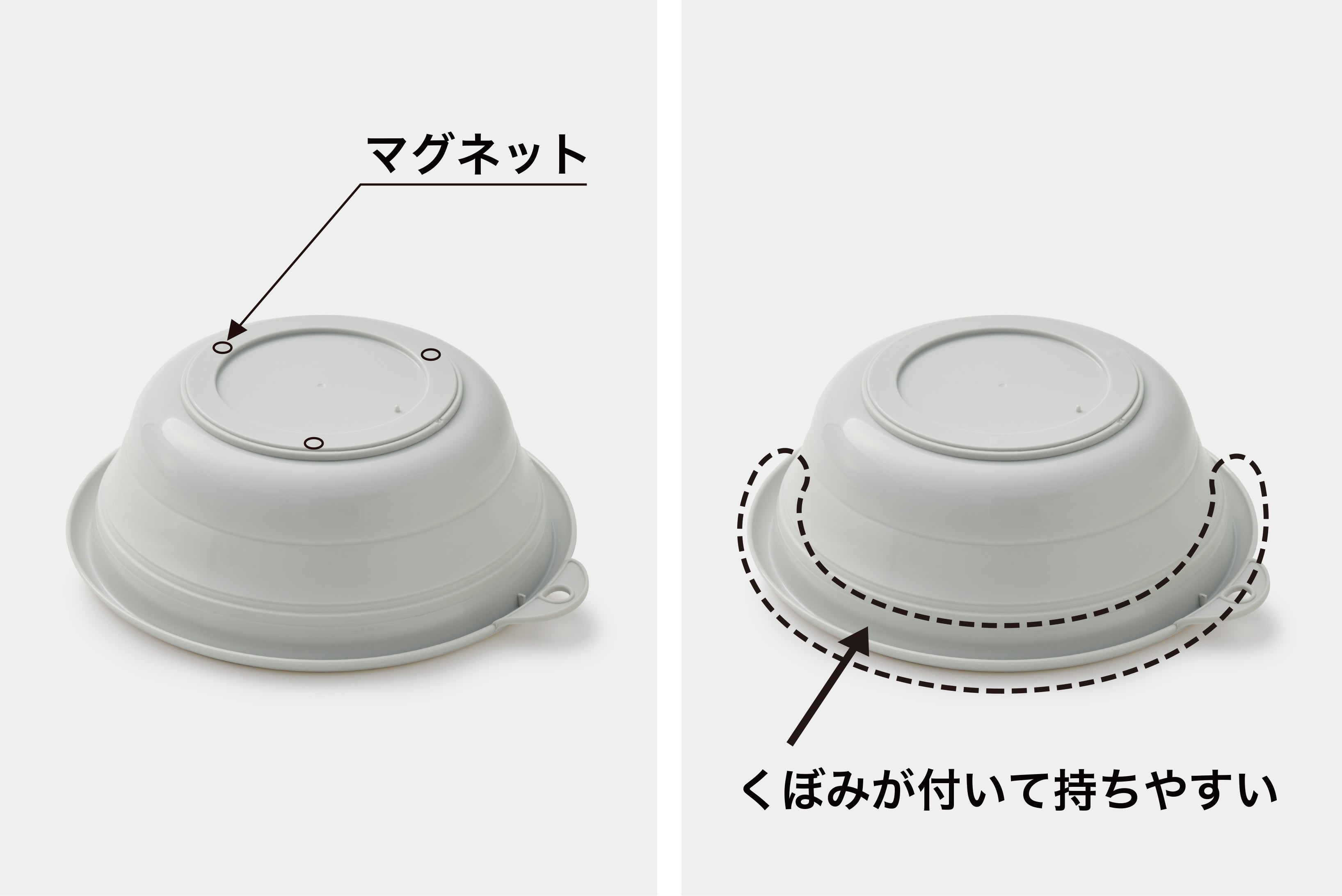 また、くぼみが付いているためお湯を入れた状態でも手軽に持ち運べます。