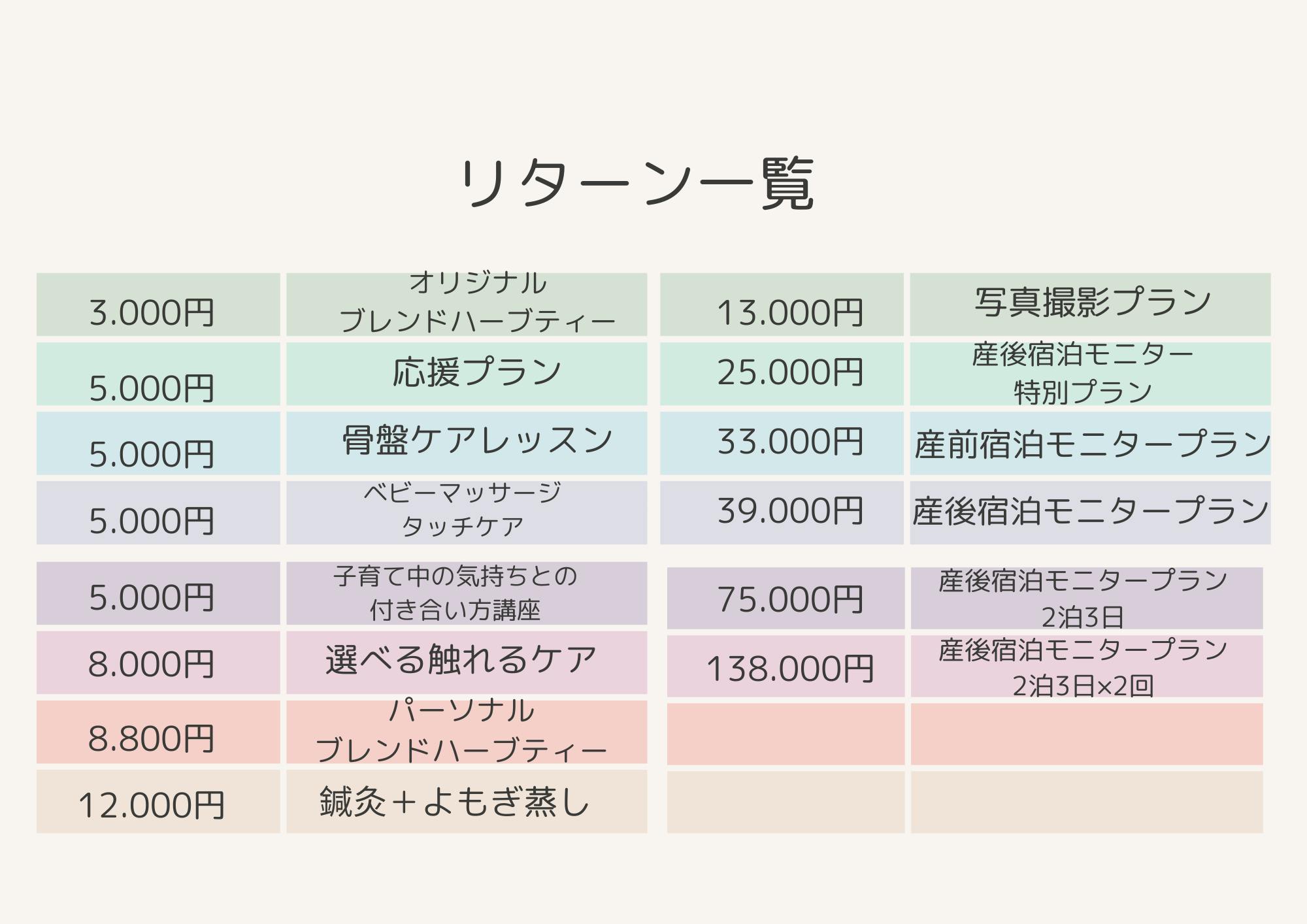 沢山ある産前産後ケア施設の中から選んでくれたご縁を大切に考えているので、産前産後ケアを卒業したら終わりではなく、利用後も楽しめる要素が沢山あります。