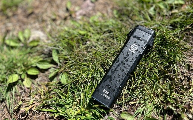 また、硬質アルマイト処理を施したアルミニウムボディと高い設計技術により作られるE30は防塵・防水性能にも優れます。