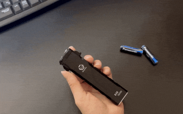 ジーンズのウォッチポケットにも収まる小型サイズながら、最大2600lmという圧倒的光量を誇り、なおかつバッテリー容量は前回のE3Plusの3倍を超えるものへと進化しています。