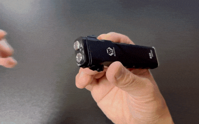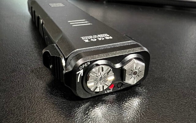 本体の表面加工は少しザラつきのある硬質アルマイト処理となったことで美しさが増し、背面のEDCスイッチ、タクティカルスイッチも防犯やSOSの際すぐに駆動できるよう綿密に設計されたものとなりました。