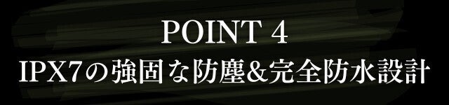 A:防塵・防水性能はIPX67を満たしており日常の雨や雪はもちろん、水没にも耐えうる性能を有しています。ただし水中で使用することを想定したものではありません。