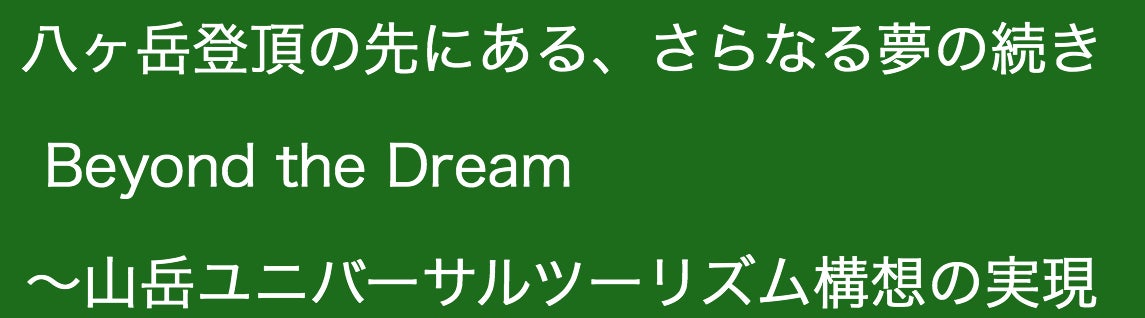 私は長年の夢である、「車椅子で八ヶ岳に登る」という人生最大の挑戦を通じて、まず自分の大切な夢をカタチにしたいと思っています。そして、その八ヶ岳登頂の経験を活かして障がいのある方々にも、山の自然を楽しめる登山体験の機会を “山岳ユニバーサルツーリズム” として実現させたいと考えています。