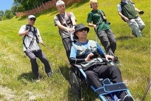①“HIPPO”チーム アウトドア用車椅子 “HIPPO(ヒッポ)” を牽引