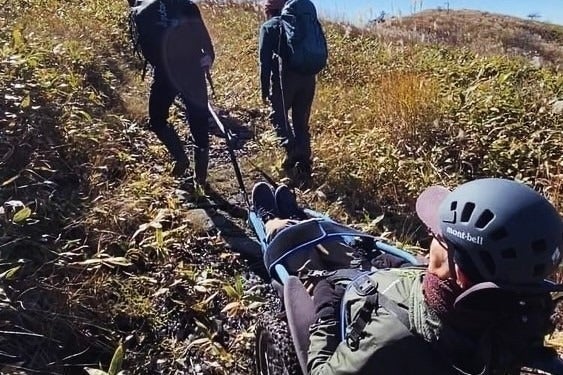 ②背負い搬送チーム 背負い具で山頂直下の区間を搬送