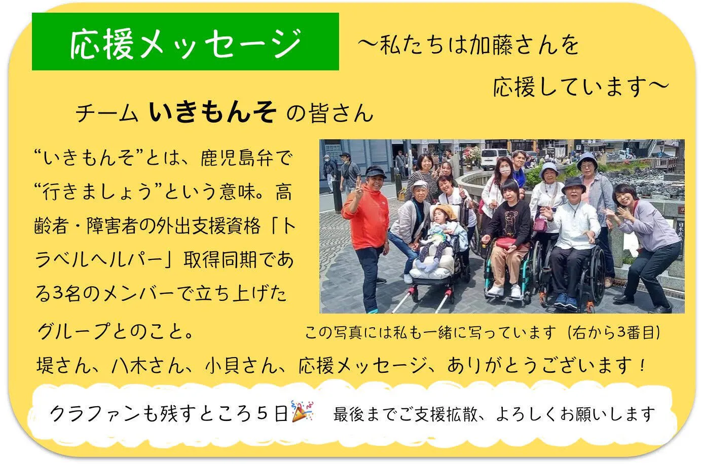 堤さんより 個人的にも一言応援メッセージ