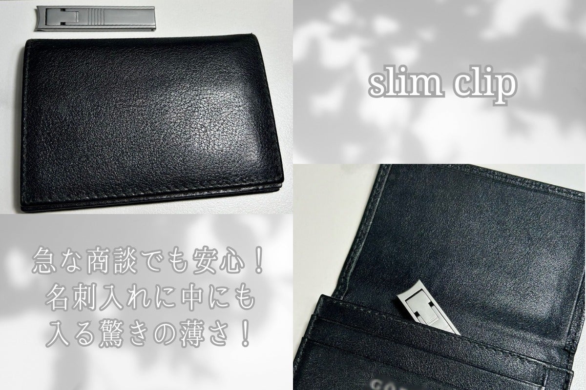 長さ6.2㎝、軽さ15.6gの「Slim Clip」は、財布や名刺入れに入れて持ち運べるので、突然の商談やデート前にもすぐに使えます。