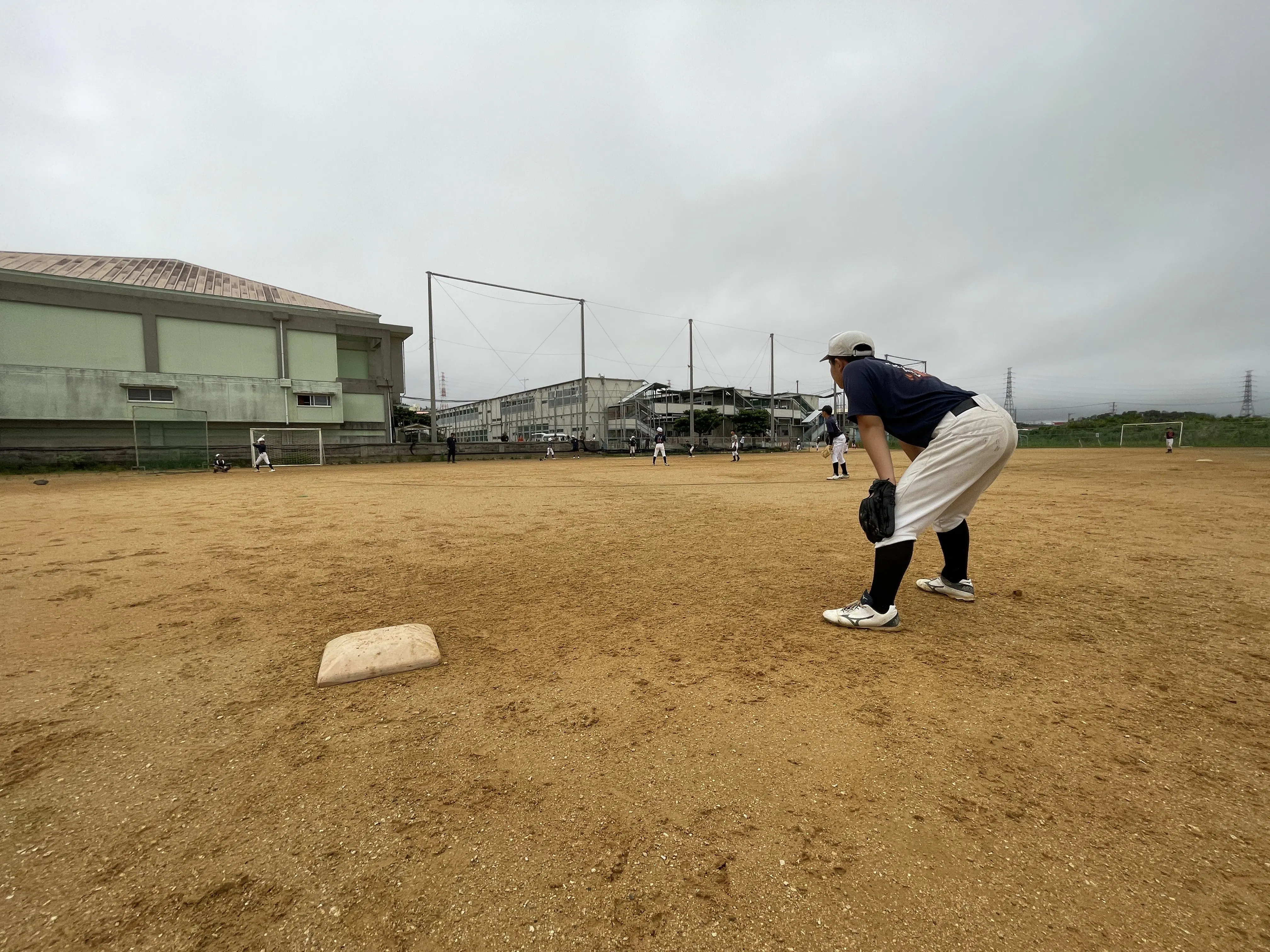今年度は校舎建て替えで小さな運動場で練習。それでも大好きな野球をできることに感謝ですね。