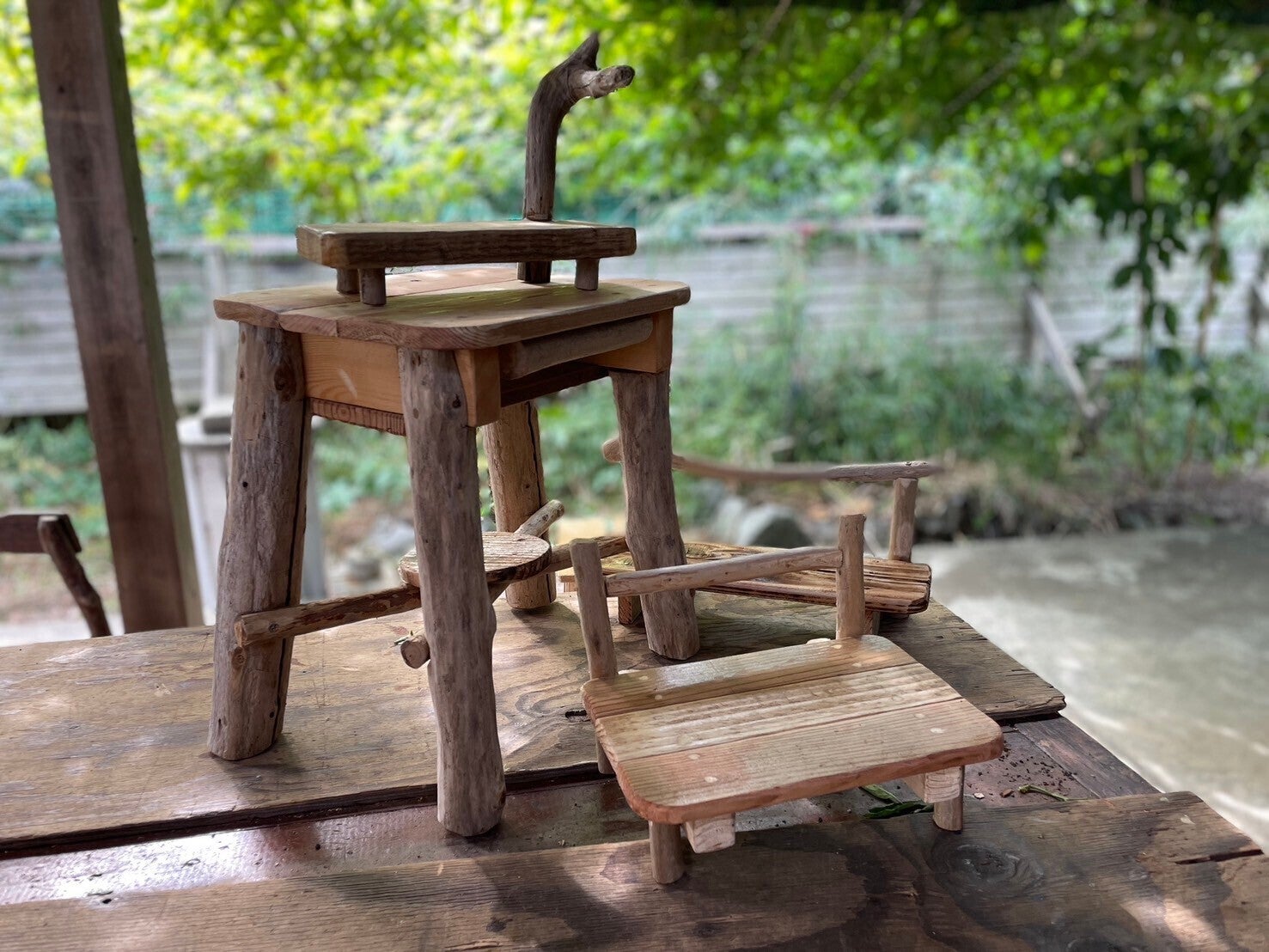 内装のお手伝いをしてくれる父は伊豆大島の流木を使ってイスや小物置きなどを作る流木アーティストです。