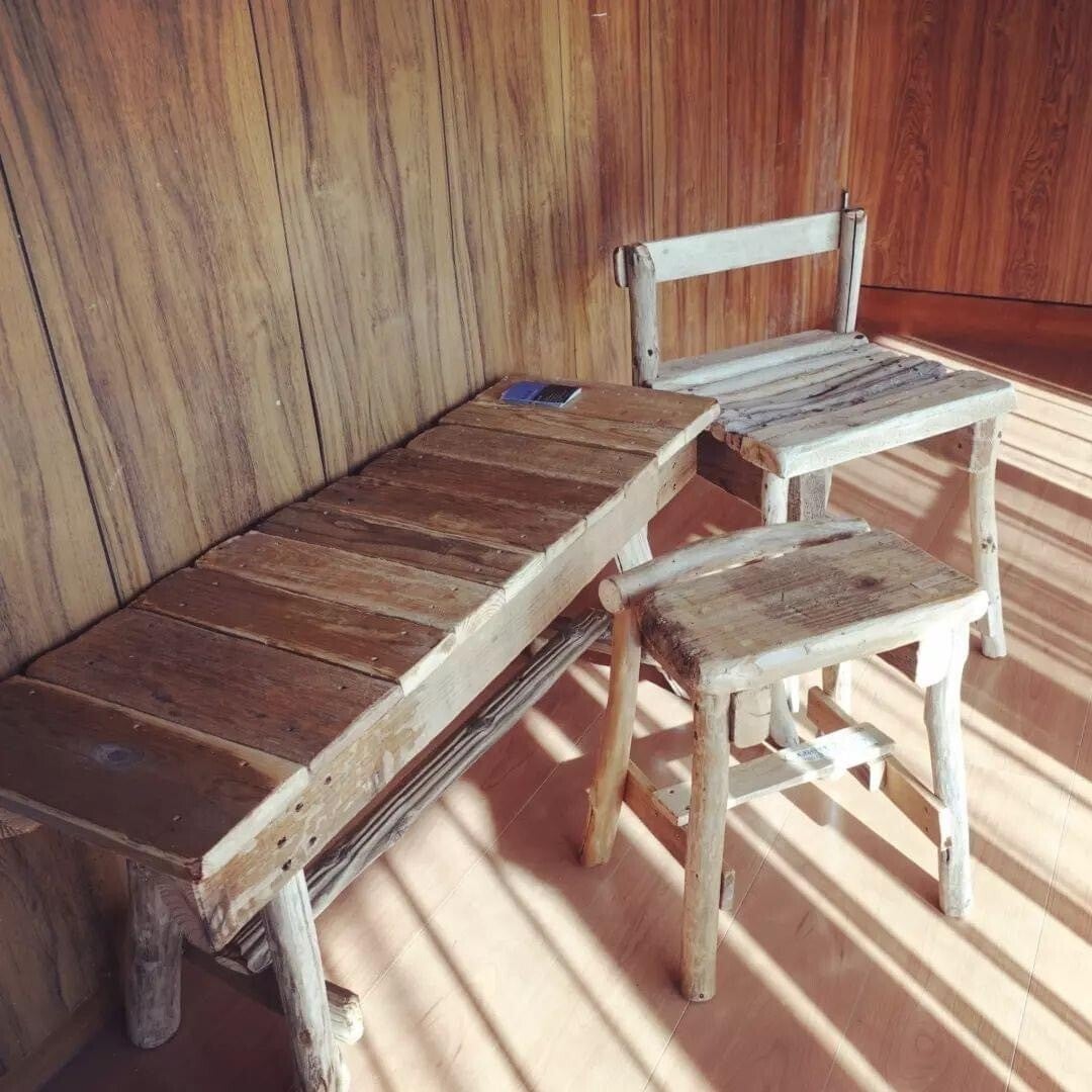 内装のお手伝いをしてくれる父は伊豆大島の流木を使ってイスや小物置きなどを作る流木アーティストです。