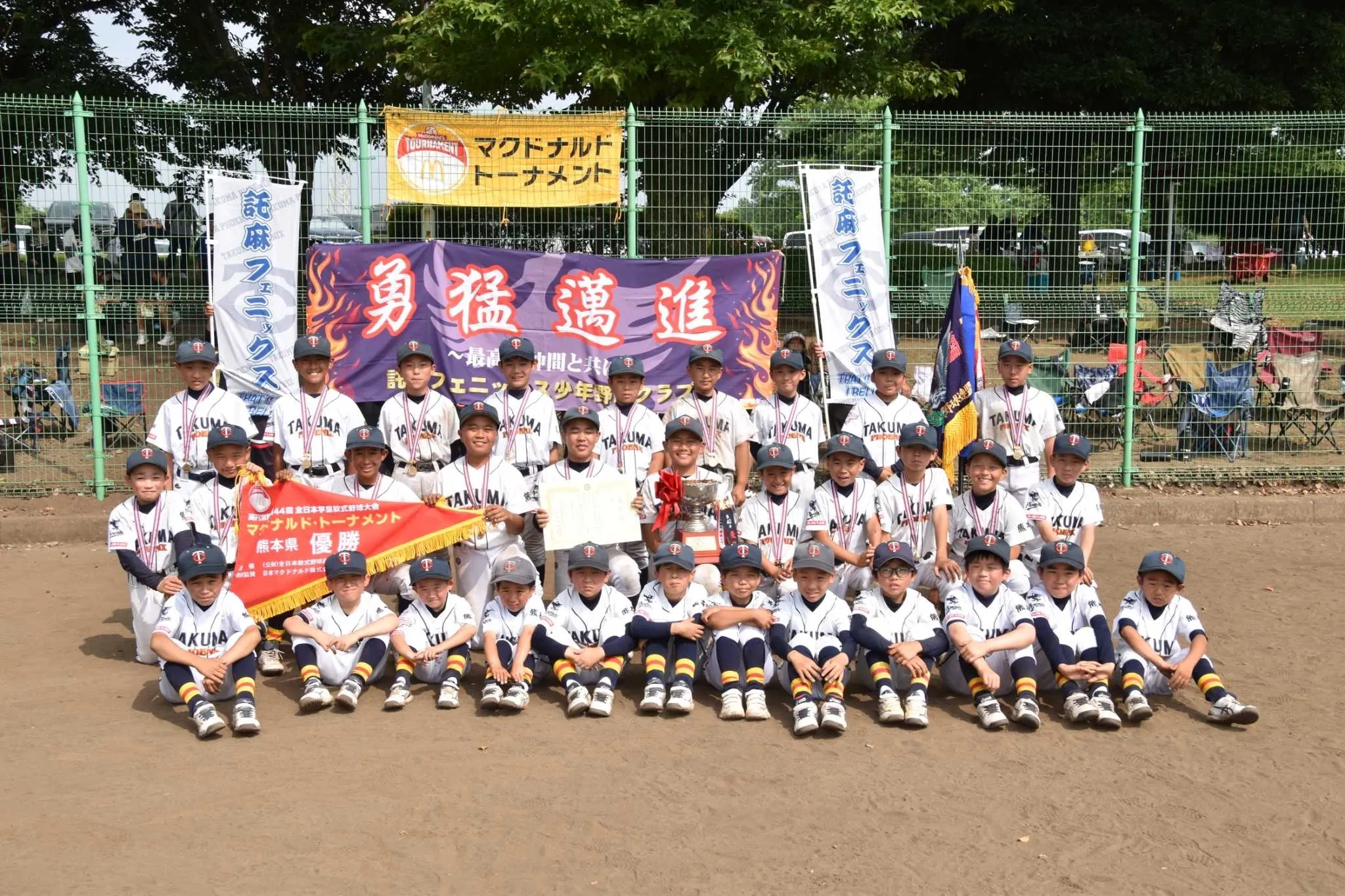 「高円宮賜杯全日本学童軟式野球大会 マクドナルド・トーナメント」は、全国約10,000チームから各都道府県予選を勝ち抜いてきたチームが出場する大会で、小学生球児の甲子園と言われています。熊本市で初のクラブチームとして結成した当チームは創部22年となった今期、悲願の初優勝を果たし、熊本県代表として選ばれました。これは子供たちにとっても指導者にとっても大きな誇りです。