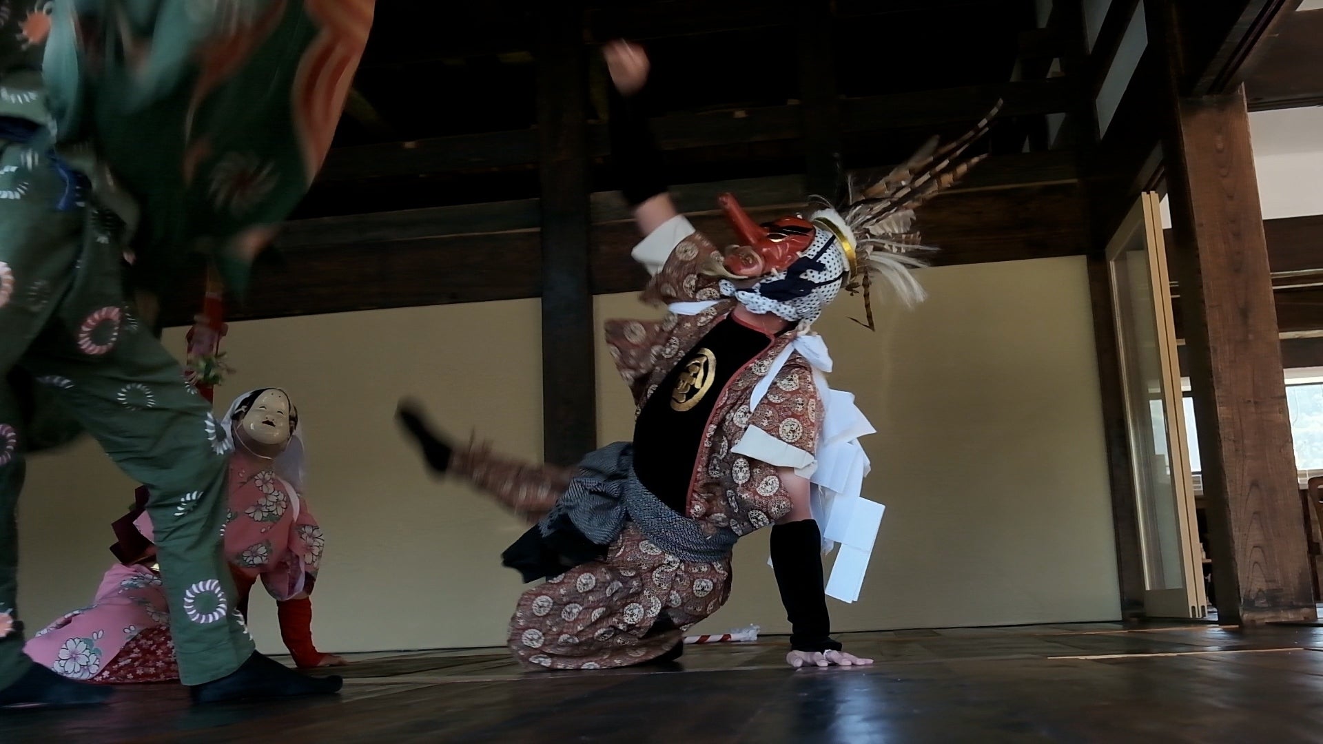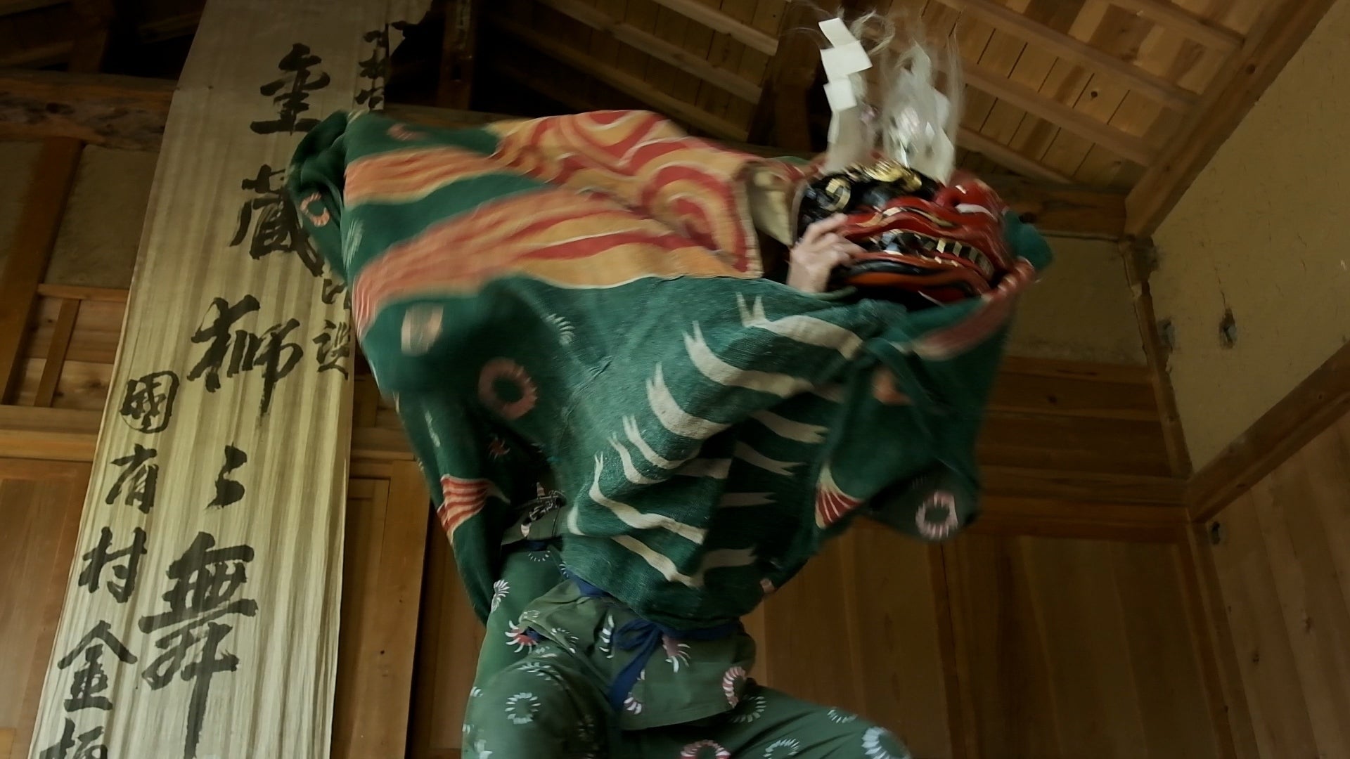 金蔵獅子は飛騨発祥とされ飛騨から越中にかけて伝承されていますが、地区によって動きが異なり金桶の金蔵獅子は他の地区より激しく速い動きが特徴です。特にこの金桶の金蔵獅子は岐阜県指定重要無形民俗文化財のひとつとなっています。